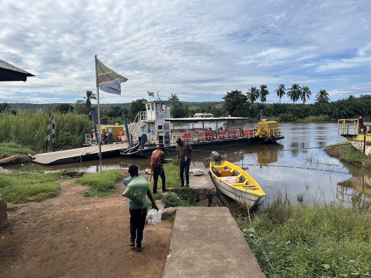 写真1 水没しかけているキゴマ郊外の道路 第7・8回のマハレ珍道中(タンザニアを車で横断する〜変わる道路事情〜その@・A)ではダルエスサラーム・キゴマ間の車移動について紹介されていますが、近年は道路の整備が進み、キゴマ→イラガラ→カトゥンビと車で移動することができるようになりました。今回も、車でカトゥンビまで移動する予定でしたが…。 「明日カトゥンビまで車で行きたいんだけど、この車で行ってくれる?」 「無理無理!雨で道がなくなっちまってるよ。がんばってイラガラまでだな」 しかたありません。途中のイラガラまで車で行って、そこからマラガラシ川をボートで下ってタンガニイカ湖に抜けて、そのままボートでマハレ入りしよう。そう決めました。そうと決めたらすぐに現地のトラッカーに連絡です。調査隊のファイバーボート(イコチャ)でマラガラシ川を遡上してイラガラ近くで待っていてもらうよう、スマホでメッセージを送っておきました。道中の計画変更は日常茶飯事で、慣れたものです。 しかし、すっかり油断をしていた私に、イラガラで更なる大きな試練が待ち受けていたのでした。 イラガラはキゴマから陸路でマハレへと向かう途中にある、マラガラシ川近くの町です。マラガラシ川は、タンガニイカ湖に注ぐ川の中では最も集水域の面積が広く、また流量の多い川とされています。そのためか、イラガラからマハレへと向かう道の途中、マラガラシ川には橋が架けられていません。その代わり、小型のフェリーのような船が1日に何度も往復して車も人も渡しています(写真2)。車でマハレ入りする際もこの小型のフェリーを利用します。私はこのフェリー乗り場で、トラッカーが運転するファイバーボートと待ち合わせをするつもりでした。しかし…フェリー乗り場のはるか手前で、タクシーは止まってしまいました。